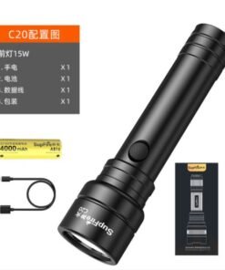 Trọn bộ SupFire C20 được bán tại shop Đèn Pin Chuyên Dụng bao gồm : đèn pin + 1 * pin 21700 + ống pin + cáp USB + hộp
